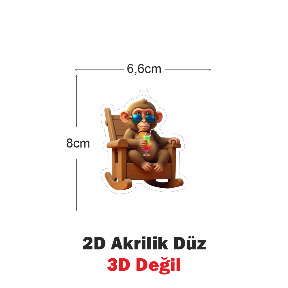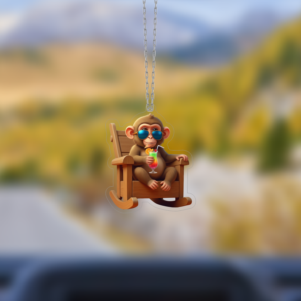 Araba Ayna Süsü Keyifli Maymun-2, Pleksi Malzeme, UV Baskılı