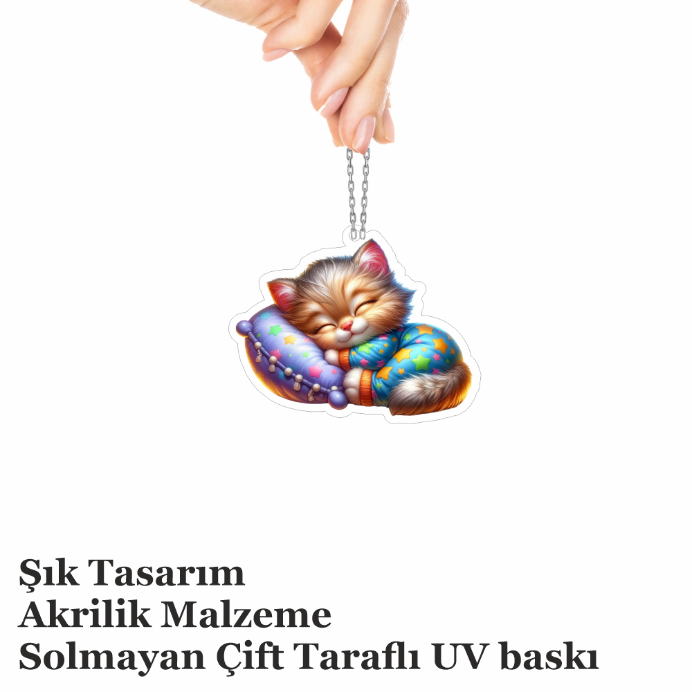 Araba Ayna Süsü Bebek Kedi, Pleksi Malzeme, UV Baskılı