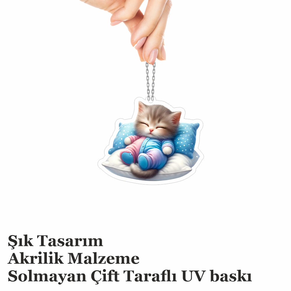 Araba Ayna Süsü Bebek Kedi1, Pleksi Malzeme, UV Baskılı