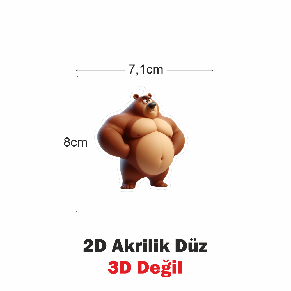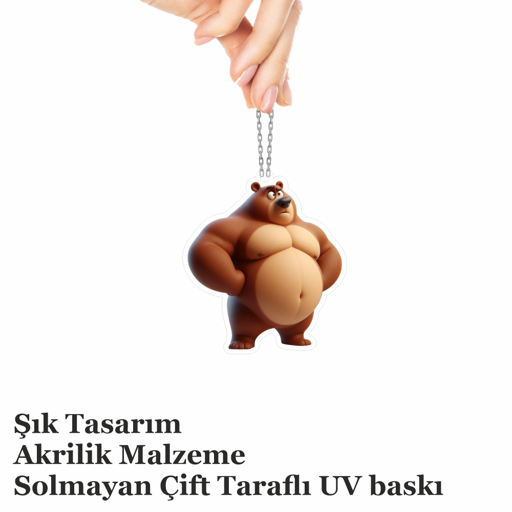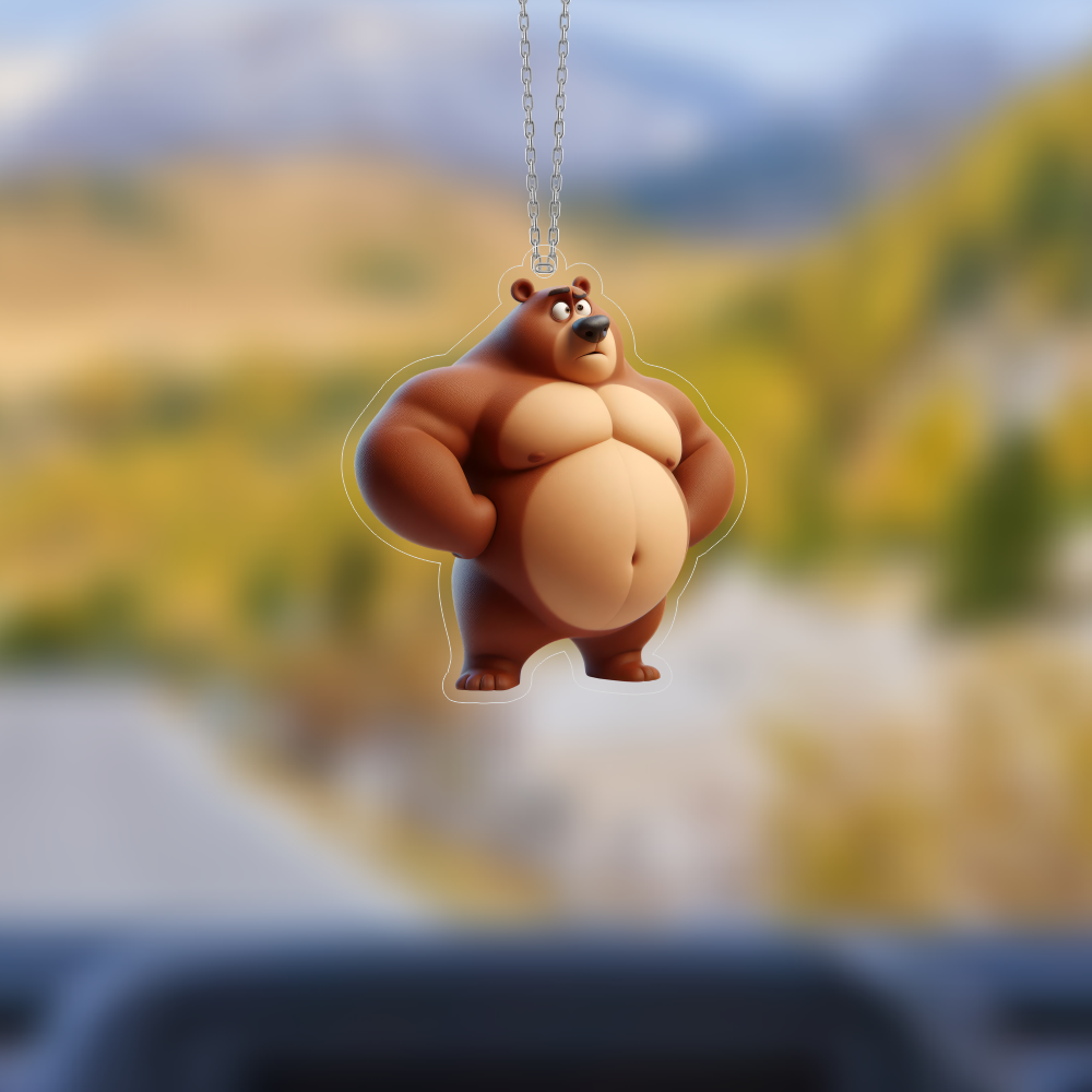Araba Ayna Süsü Şişko Ayı, Pleksi Malzeme, UV Baskılı
