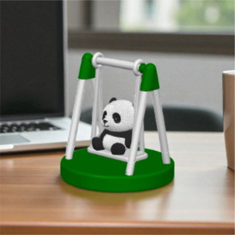 Çok şık ve çok sevimli salıncakta sallanan panda figürü, hediye yada kendi kullanımınız için mükemmel seçim. Masa üzerinde yada arabada kullanılabilecek plastik malzemeden üretilmiş figür, sallanan salıncak her ortama neşe ve hareketlilik getirecek.